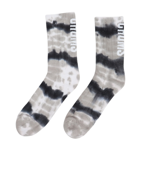 Tie-dyed bulky socks with antibacterial and deodorizing treatment for a smooth and comfortable feel. CHUMS word mark on the back of the ankle.