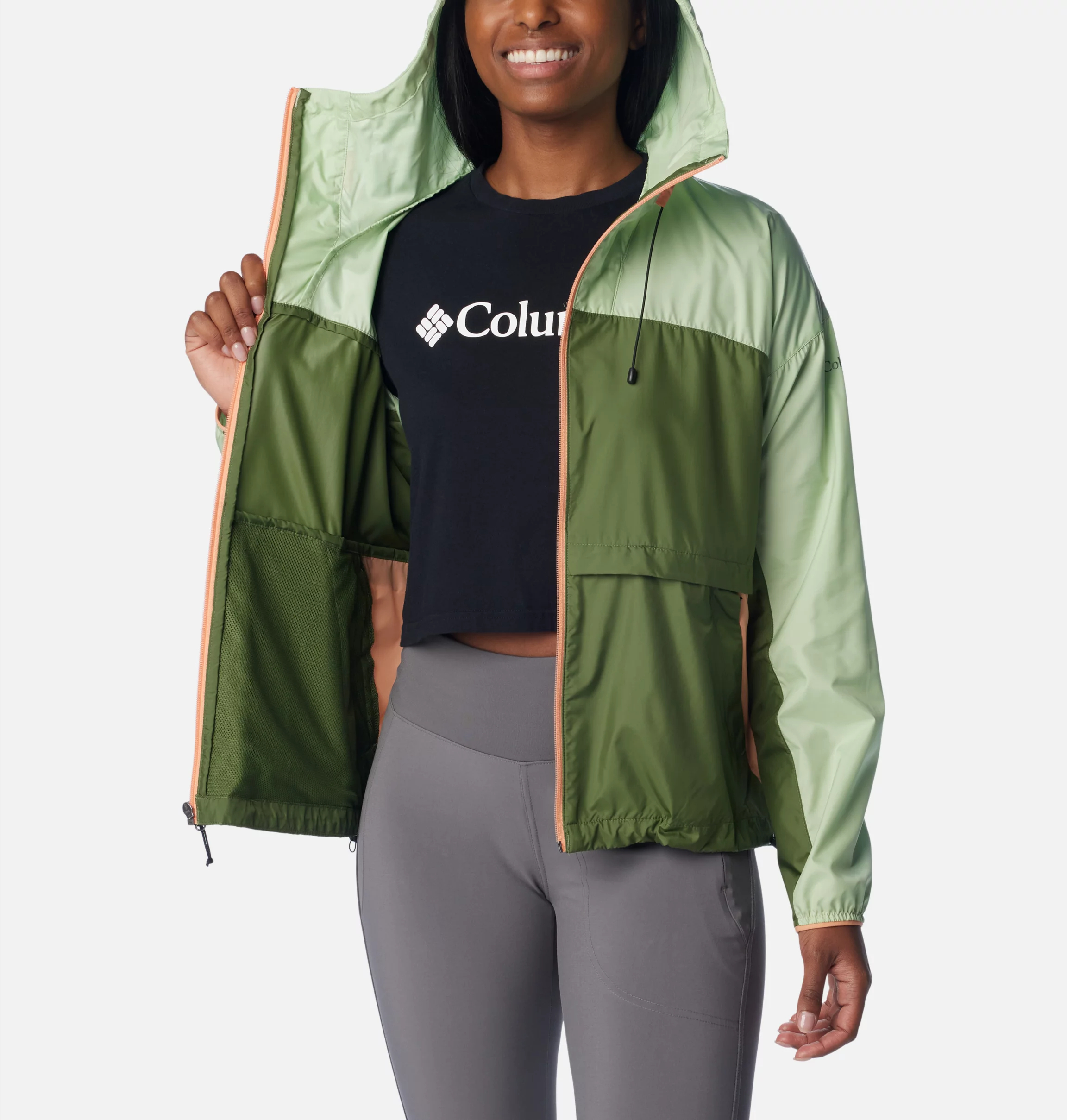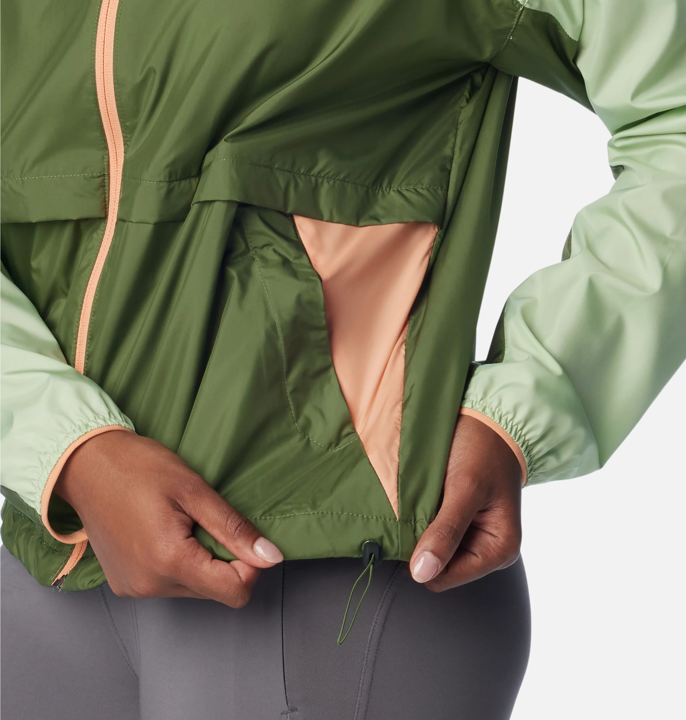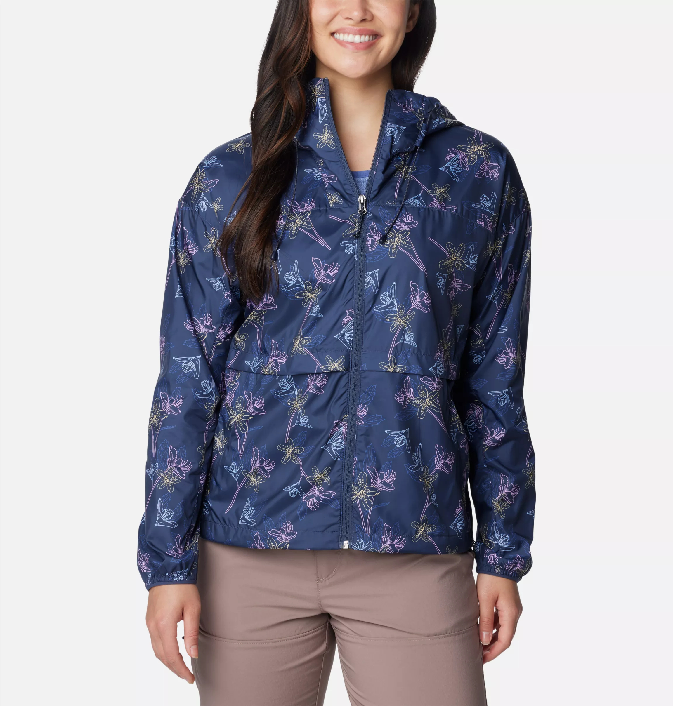 With its stowaway hood and adjustable hem, this windbreaker jacket for women will keep you on the trail no matter what.