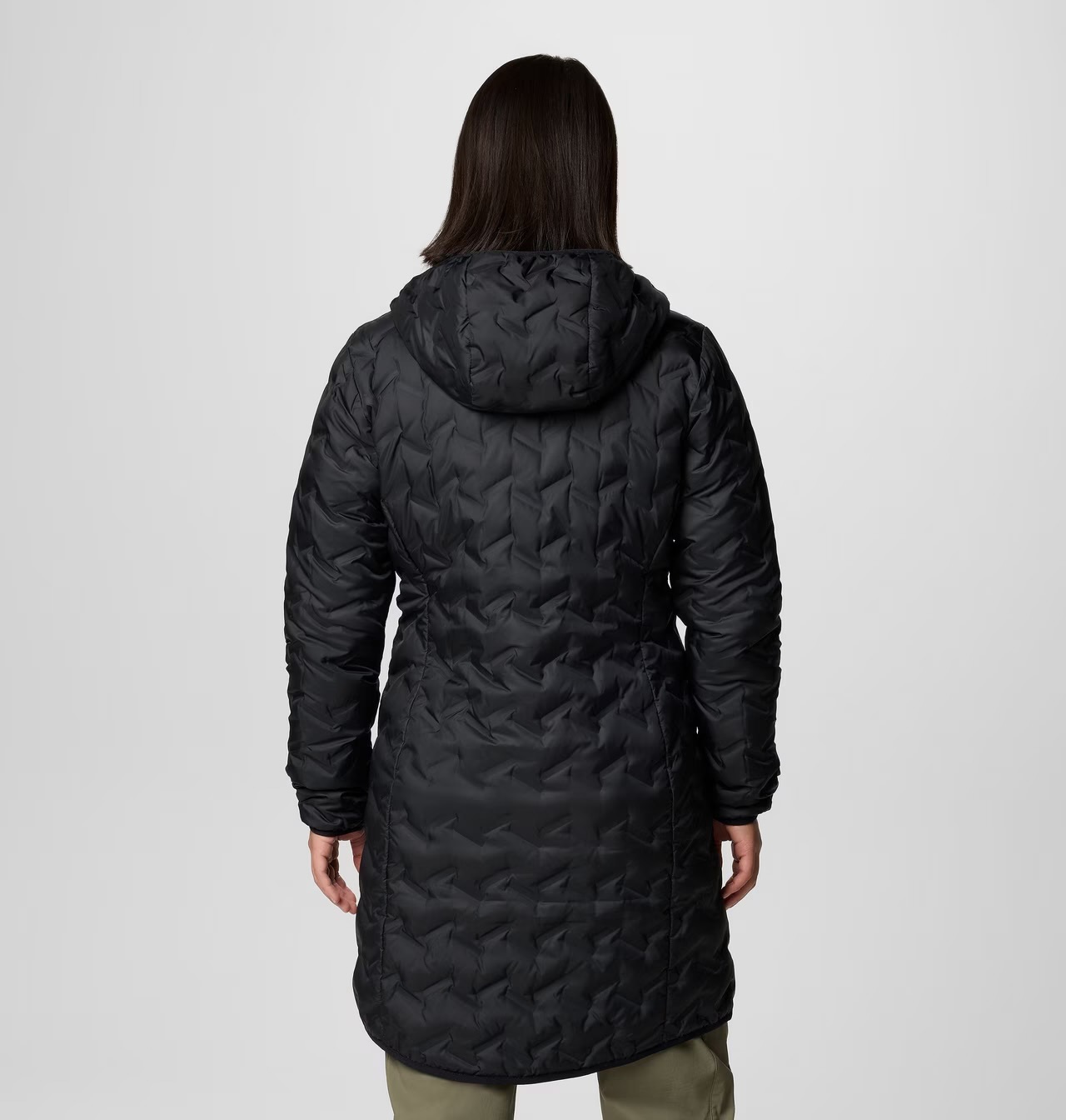 Thermal-reflective down jacket with 650 fill power, water-resistant shell, Heat Seal construction, zippered hand pockets, and binding at hood, cuffs, and hem for all-day warmth.