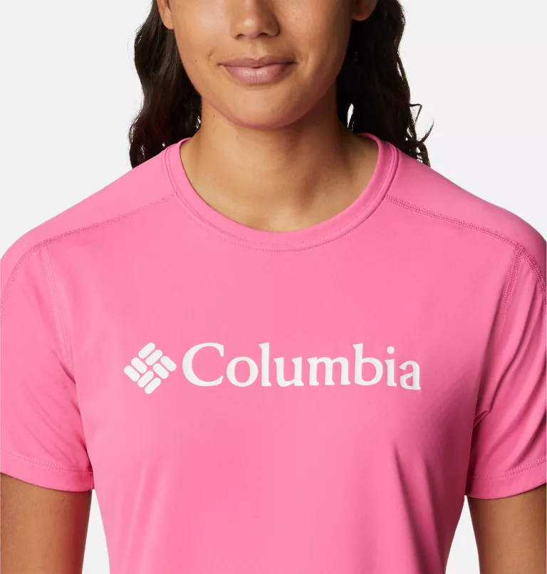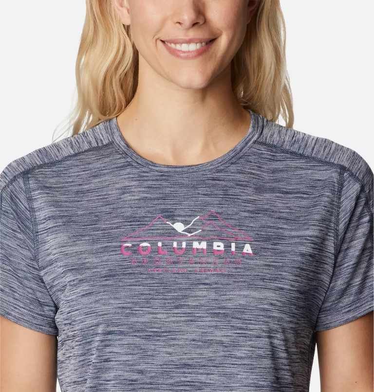 A technical tee with a modern graphic print look for looking cool in the summer sun.