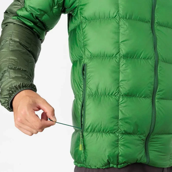 A high-loft men's down parka offering exceptional warmth-to-weight ratio for severe cold weather conditions.