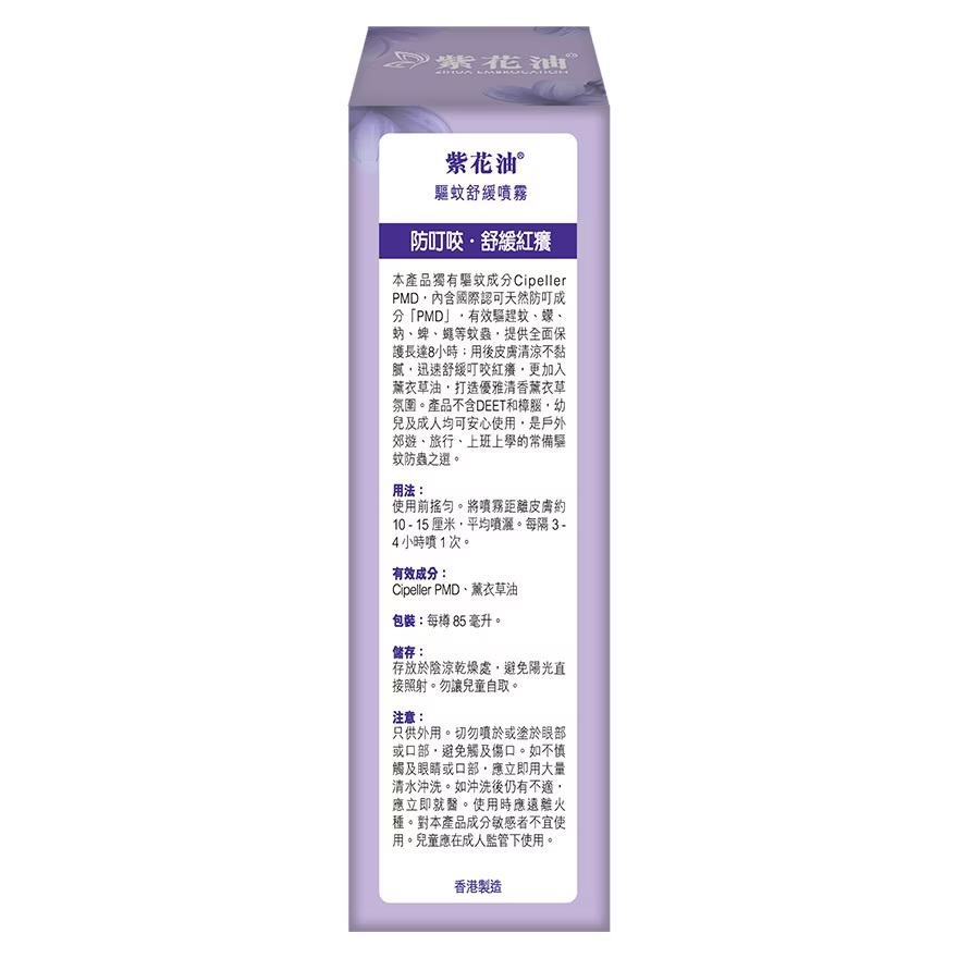 Essential Oil Soothing Spray (Lavender)”uses UK’s unique patented ingredients Citrepel ®75, which contains PMD (an approved natural anti-bite ingredient) and Cnidium Monnieri (L.) Ethanol Extract, offering a dual effect of“bite prevention and itch relief”.