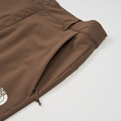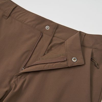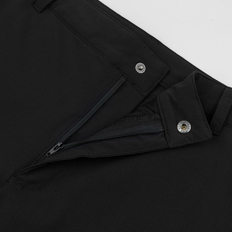 Regular fit with snap button placket at center front. Reverse welt zipper pocket on right side. Embroidered half-dome logo on front left thigh.