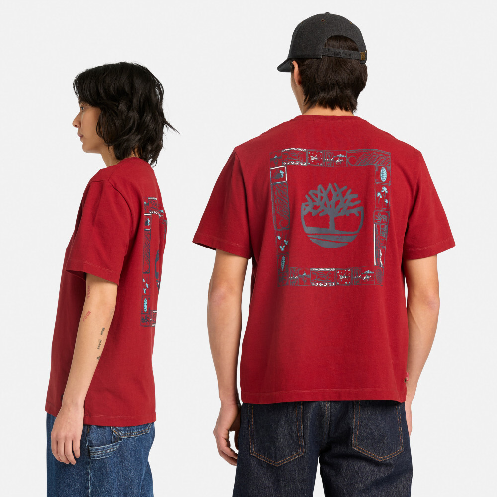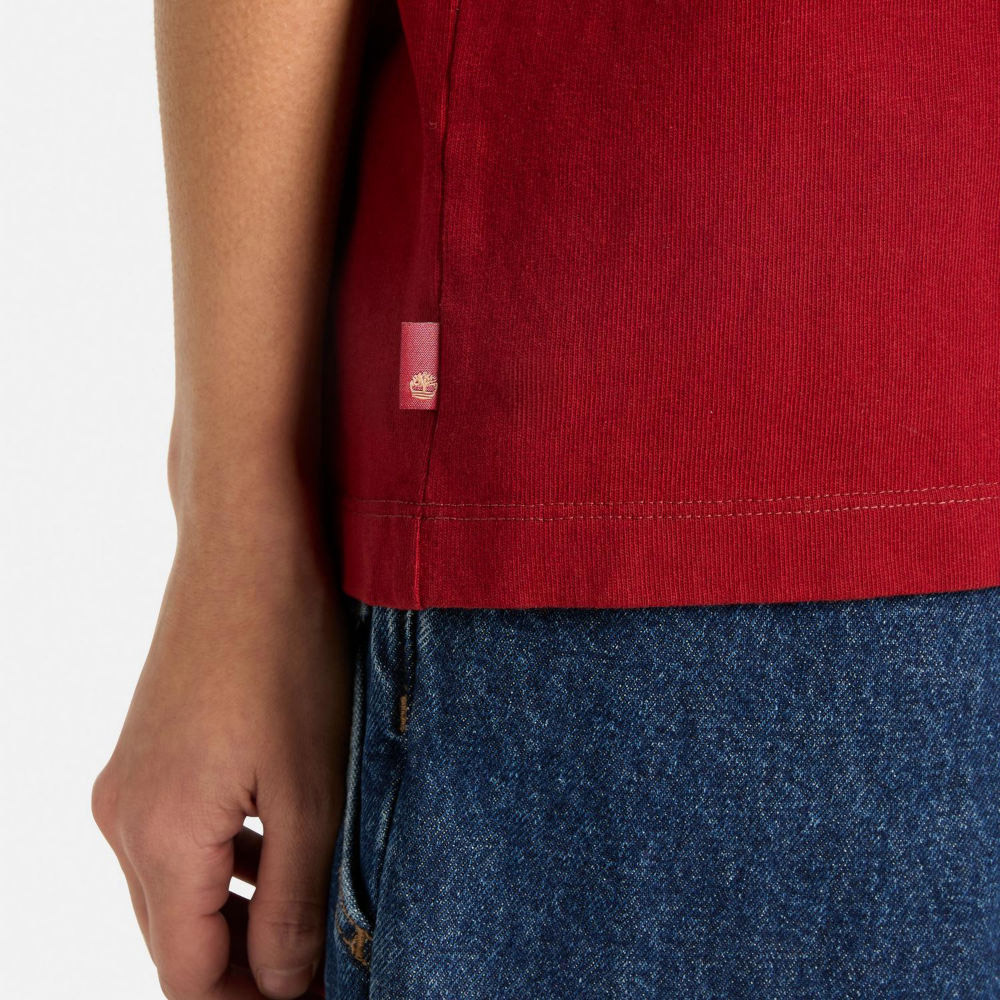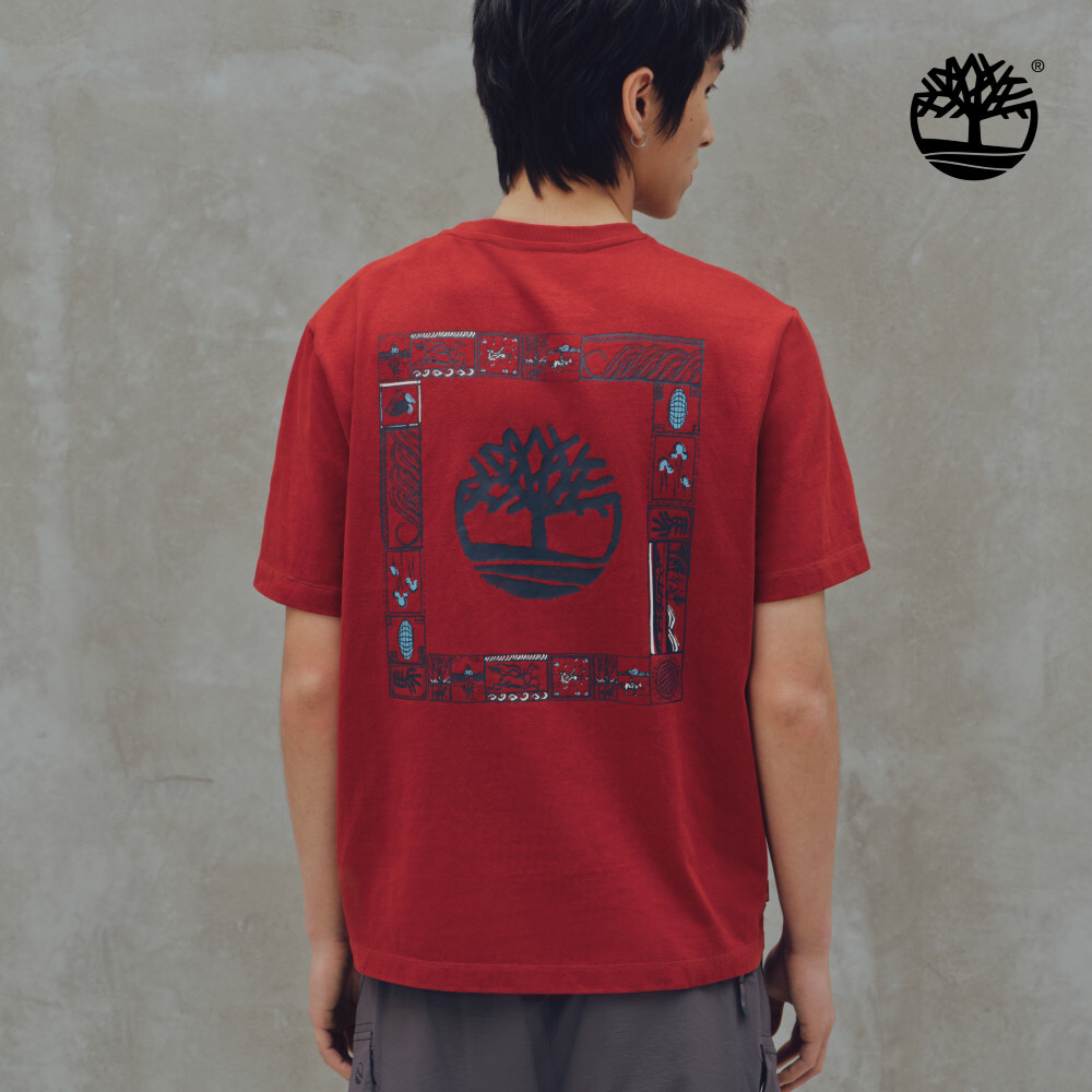 Red short-sleeve tee featuring special Year of the Horse graphic prints on front and back. Made from soft organic cotton jersey with a relaxed fit for casual comfort .