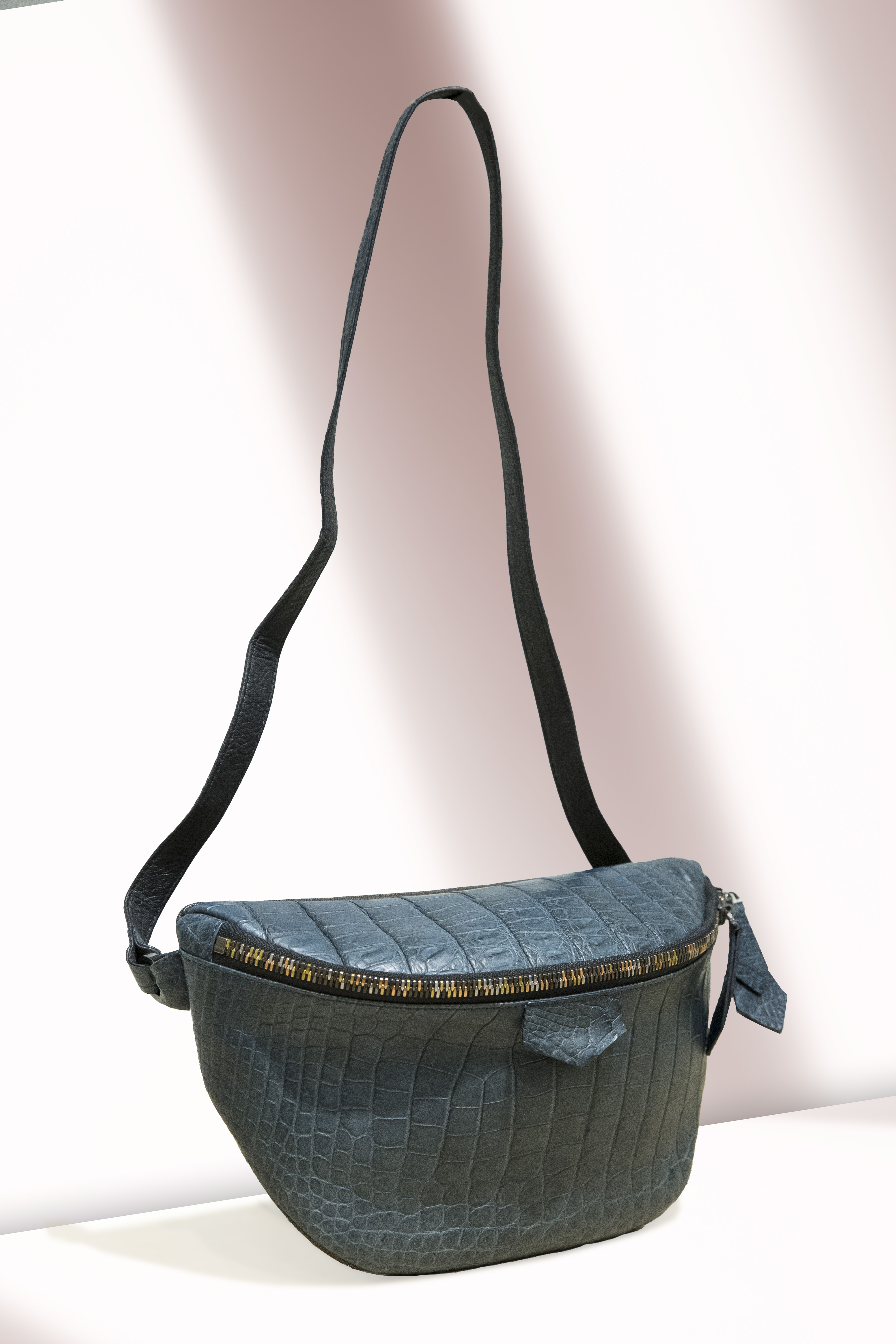 採用精緻鱷魚皮打造的腰包,時尚耐用兼具,是日常生活的實用配件。