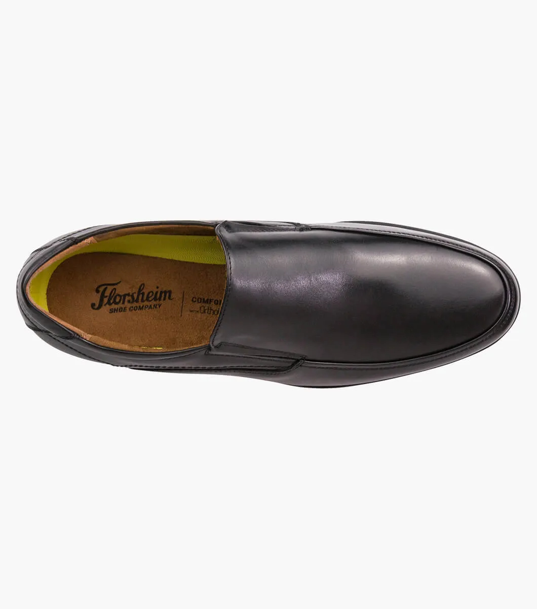 Florsheim Springfield Moc Toe Slip On 擁有經典設計,並增添現代的杏仁形鞋頭。非常適合工作或休閒,配備 Ortholite 墊腳、模壓鞋跟以及墊肩和舌頭,提供舒適感。