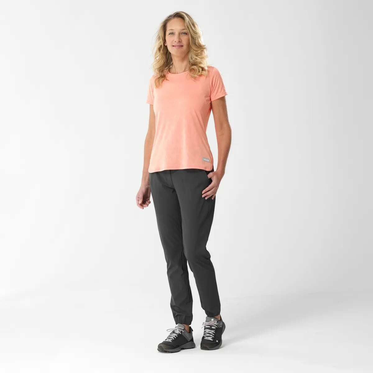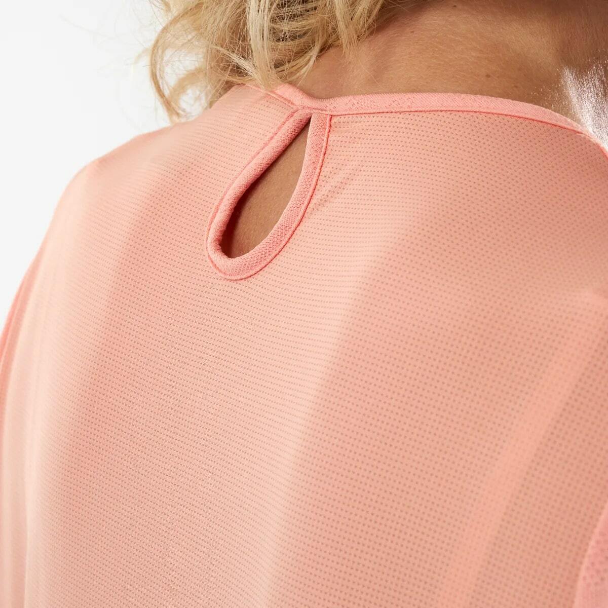 這款T恤採用舒適合身的設計,使用兩種不同面料製成。背部設有通風網眼插片,配有圓領和女性化的緞邊飾邊。