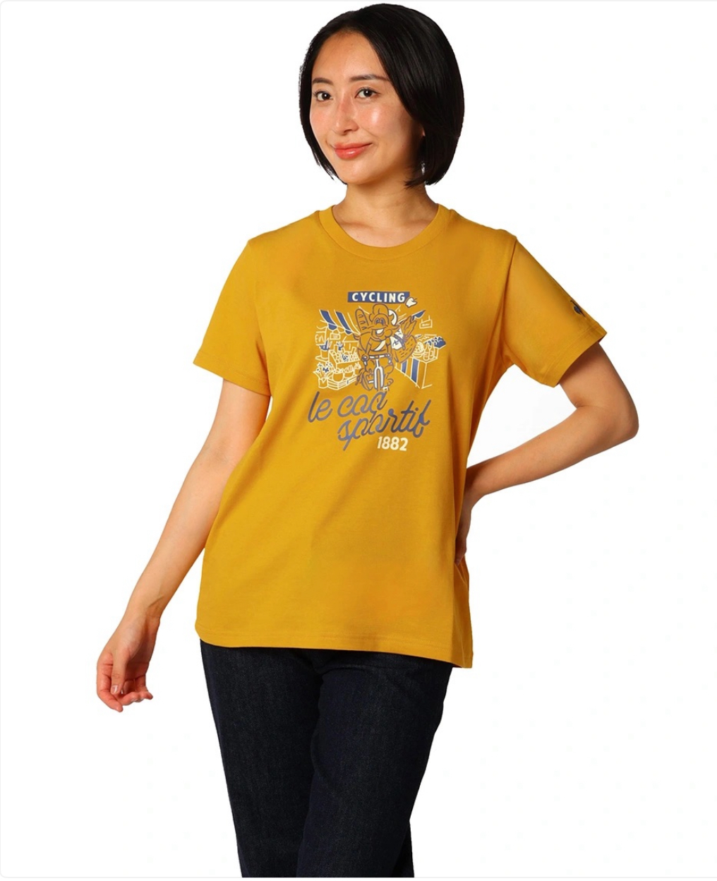 這件襯衫採用俏皮的圖形設計,以與le coq sportif的歷史(網球、腳踏車和足球)密切相關的運動和該品牌標誌性的公雞為特色。