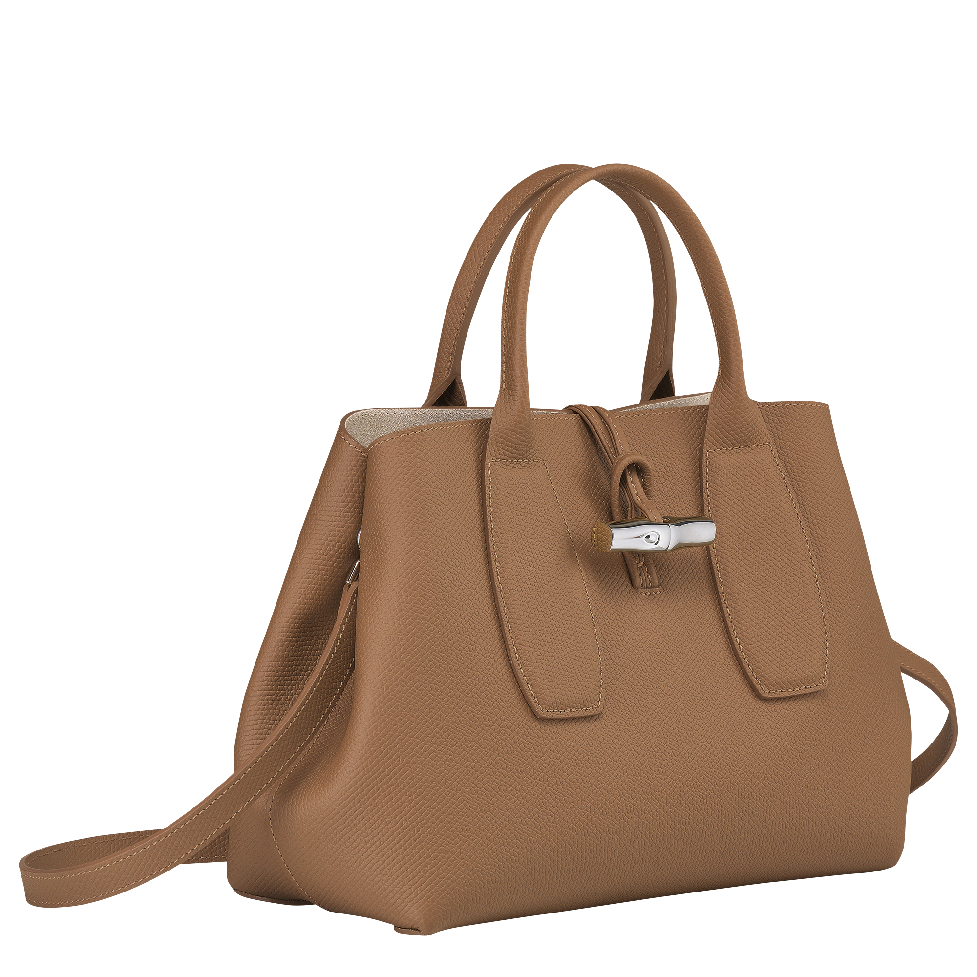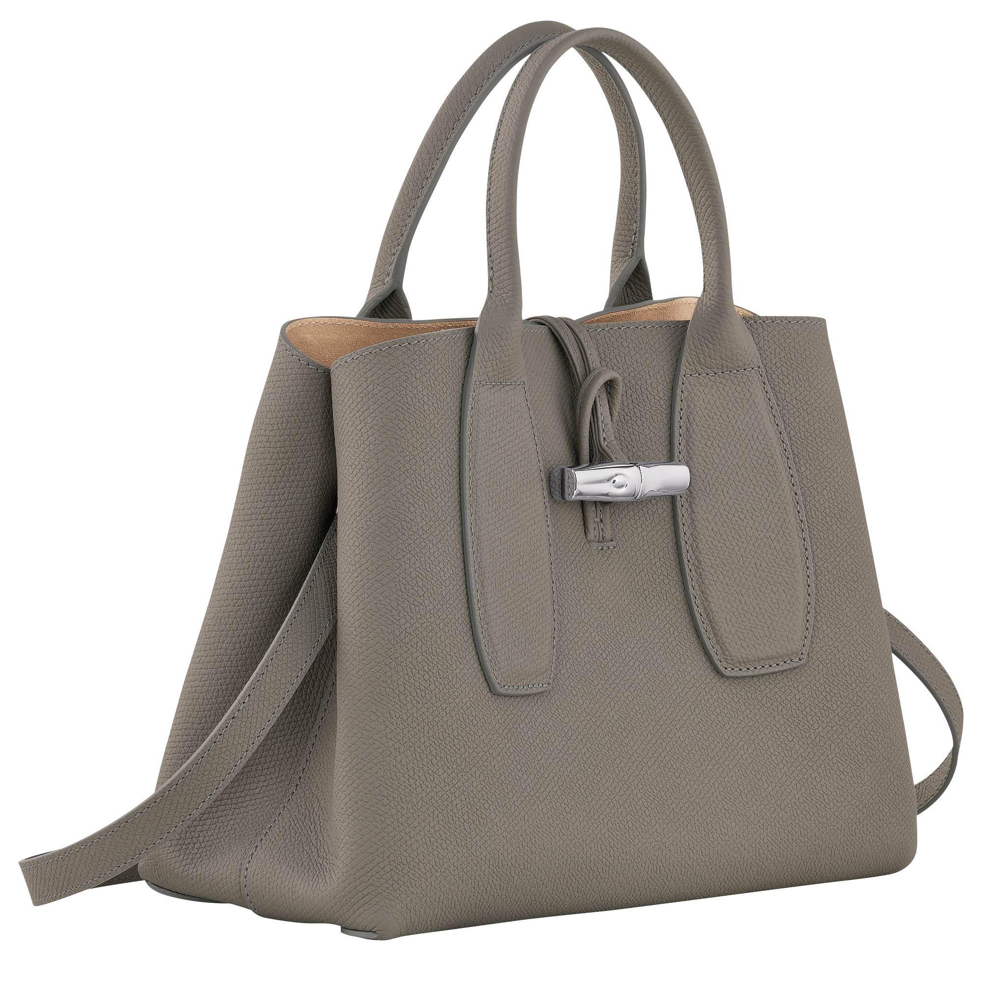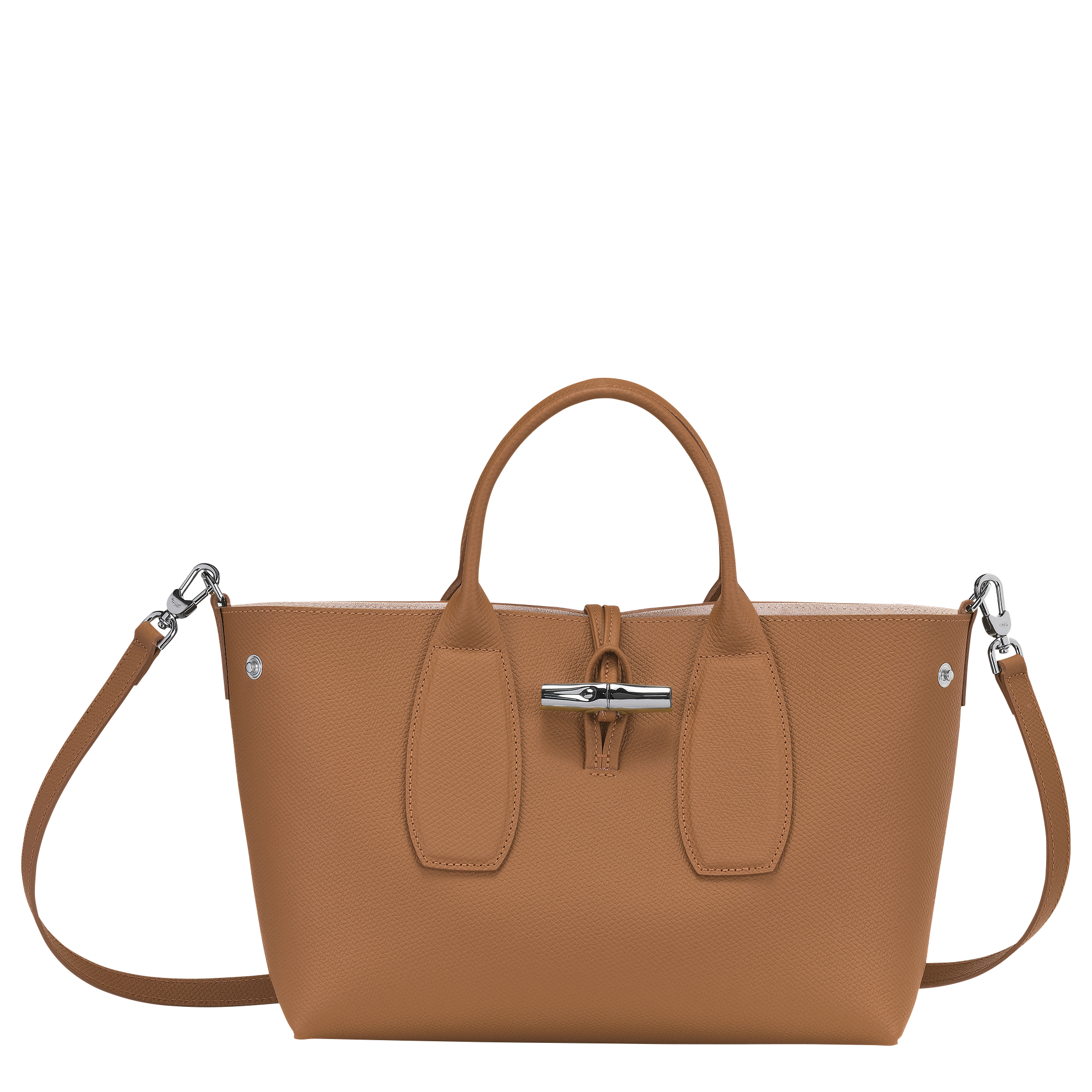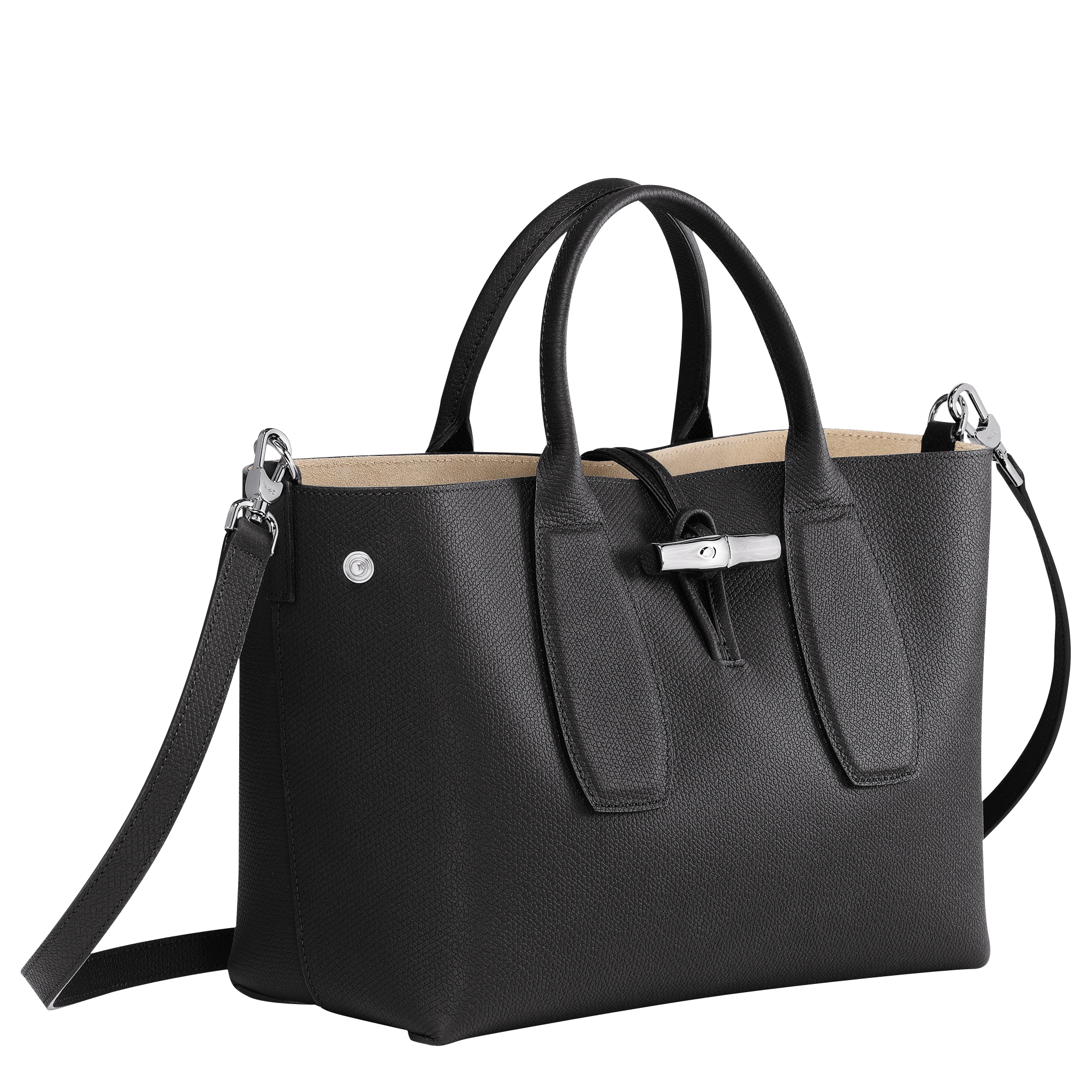 這款手袋由柔軟光滑的小牛皮製成,散發出永恆的優雅。非常適合日常使用,舒適容納您的必需品。可調節的可拆卸肩帶提供多樣攜帶選擇,而竹子扣環增添了精緻和魅力。