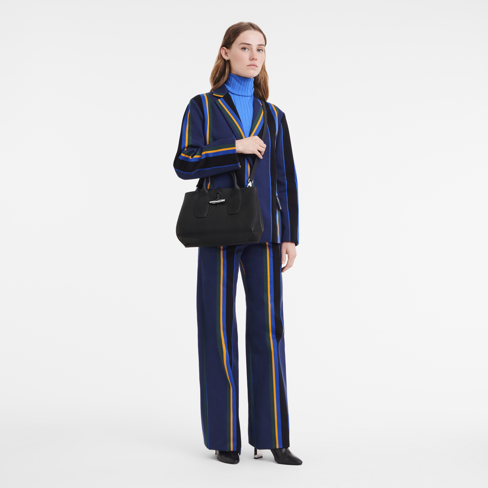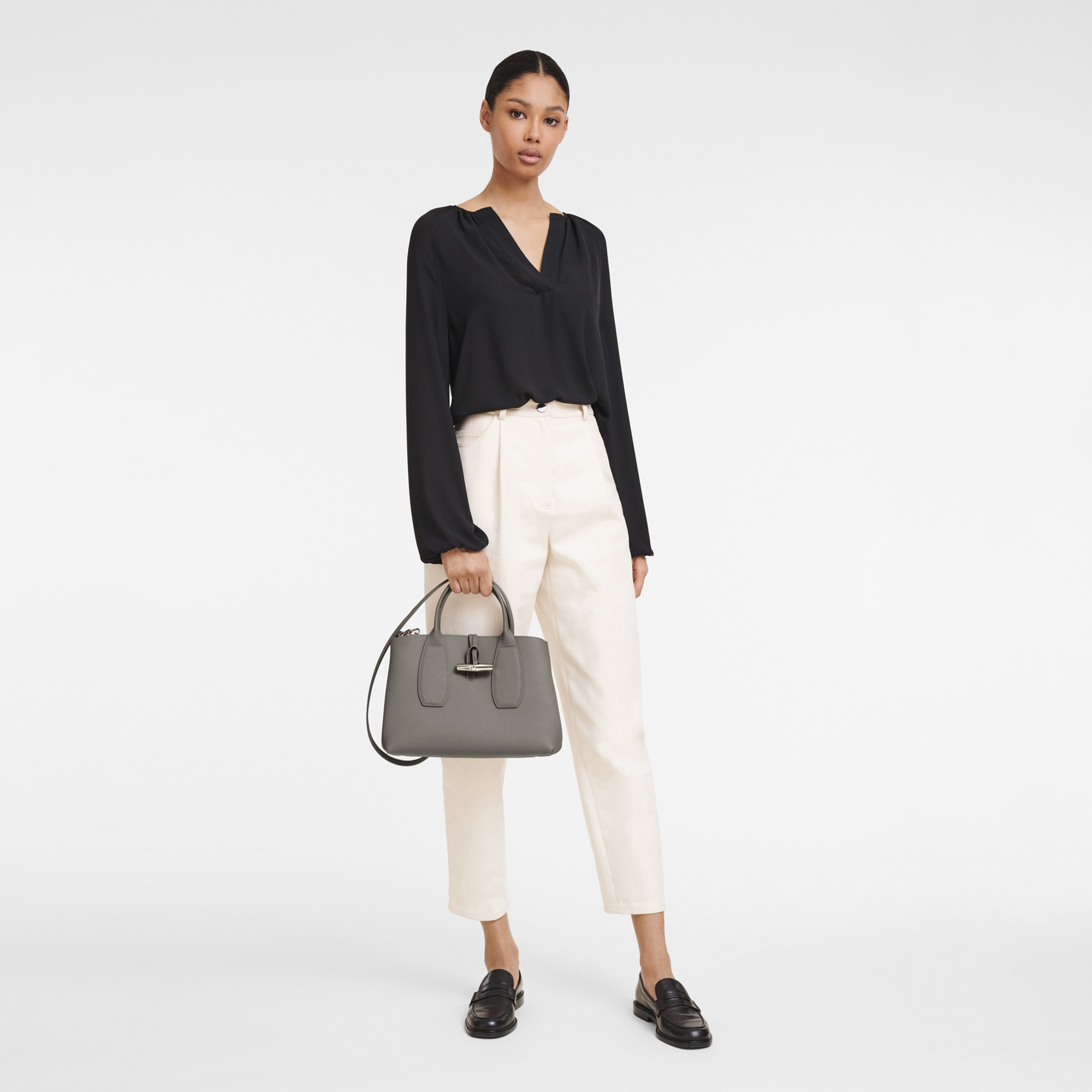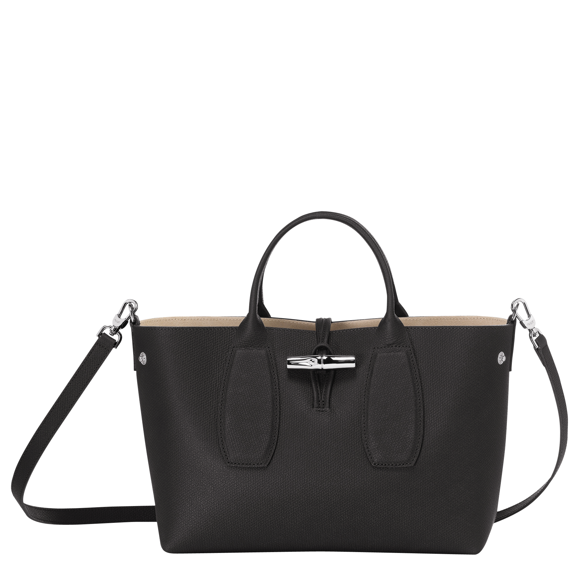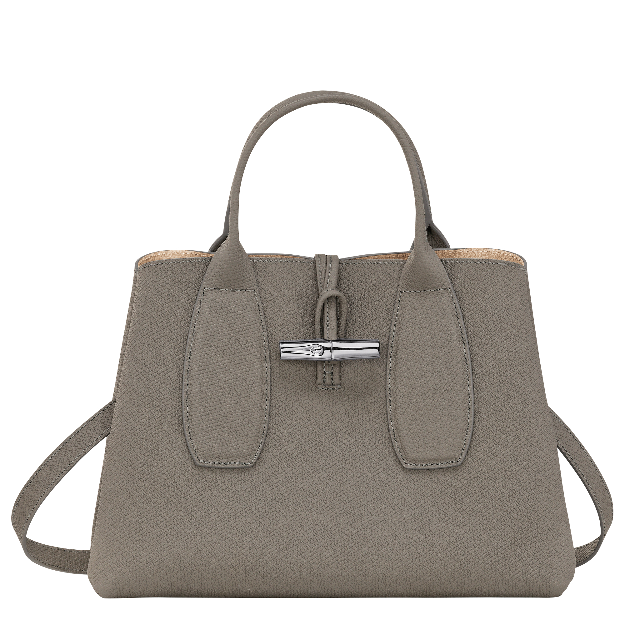 這款手袋由柔軟光滑的小牛皮製成,散發出永恆的優雅。非常適合日常使用,舒適容納您的必需品。可調節的可拆卸肩帶提供多樣攜帶選擇,而竹子扣環增添了精緻和魅力。