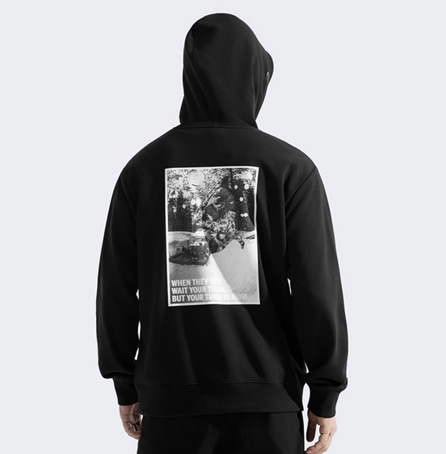 以自由騎行精神為靈感的印花連帽衛衣,專為舒適活動設計,適合戶外或休閒場合。