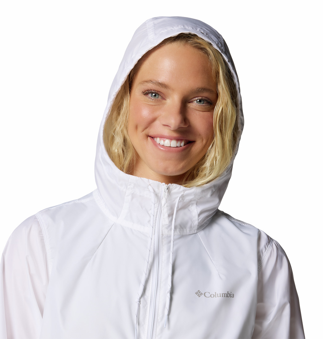超輕量防曬防風外套,搭載 UPF 40 奧米防曬科技與奧米防潑水抗汙技術。可調式連帽、拉鍊口袋,可收納設計,健行必備。