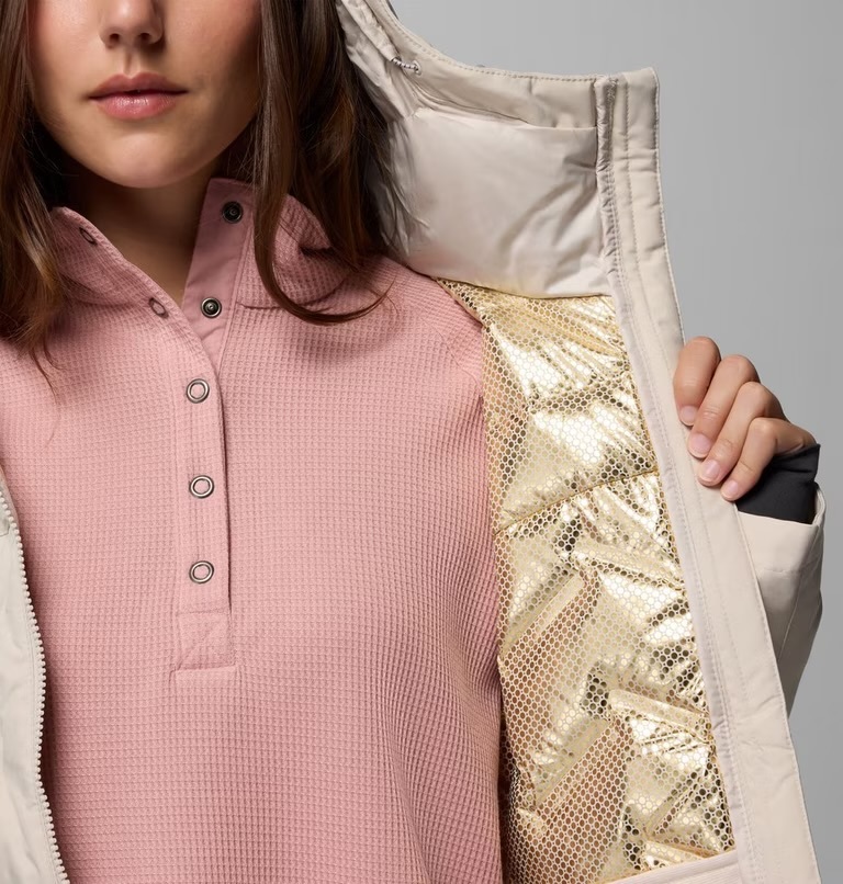 防水透氣羽絨外套,搭載 Omni-Heat™ Infinity 進階熱能反射內裡與 650FP RDS 認證羽絨。配備可調節連帽、拉鍊插手口袋及舒適拇指孔袖口,適合寒冷天氣健行。