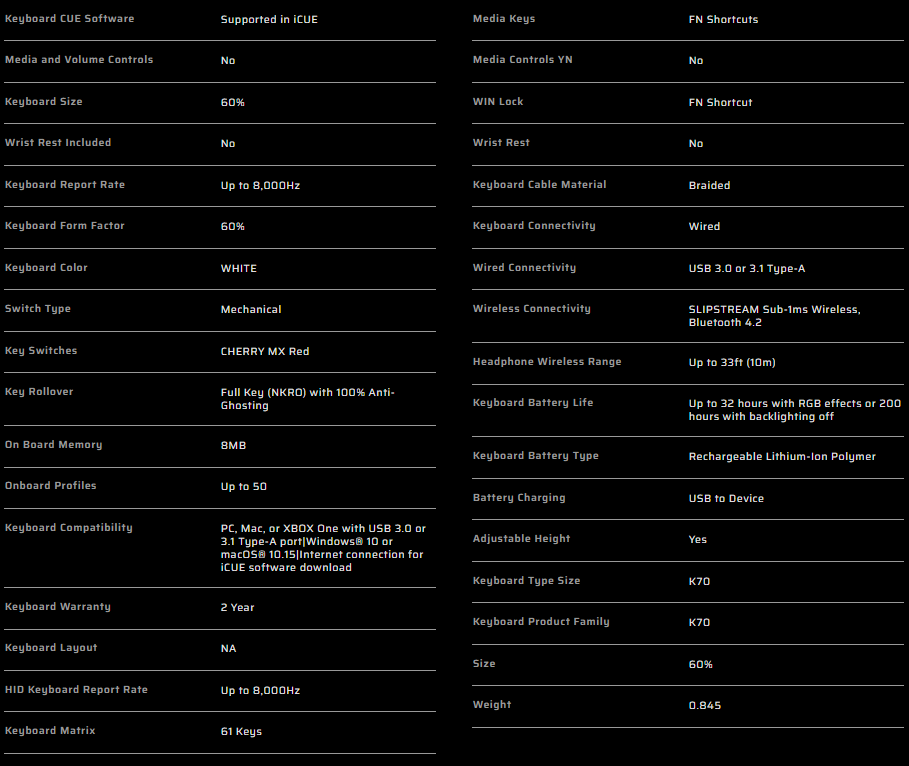 Corsair - K70 PRO RGB Mini Wireless 機械式電競鍵盤(白色)(CO-KB-K70MN-WRL-BLK-MXRED)
